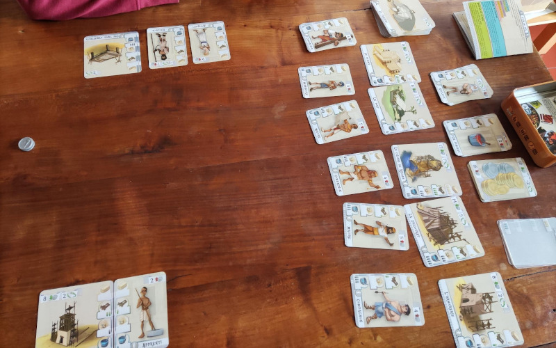 - Le fait que le jeu tienne dans une petite boite et puisse etre emmené en vacances (pas besoin d’une trop grande table pour jouer) est un atout incontestable. En plus j’aime bien ce concept de petite boite où on n’essaie pas de faire croire au client qu’il doit payer cher parce que la boite est grosse 😉
